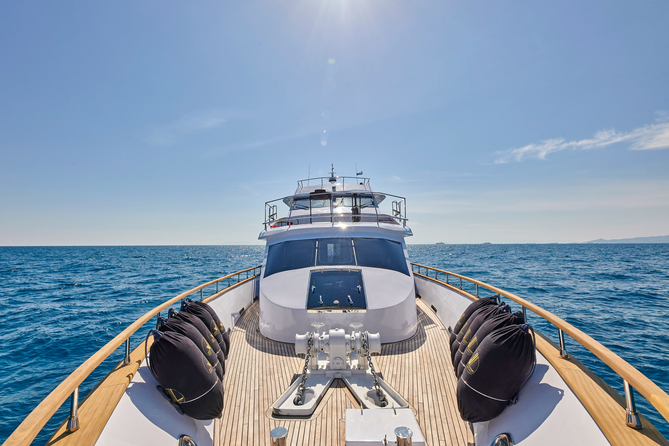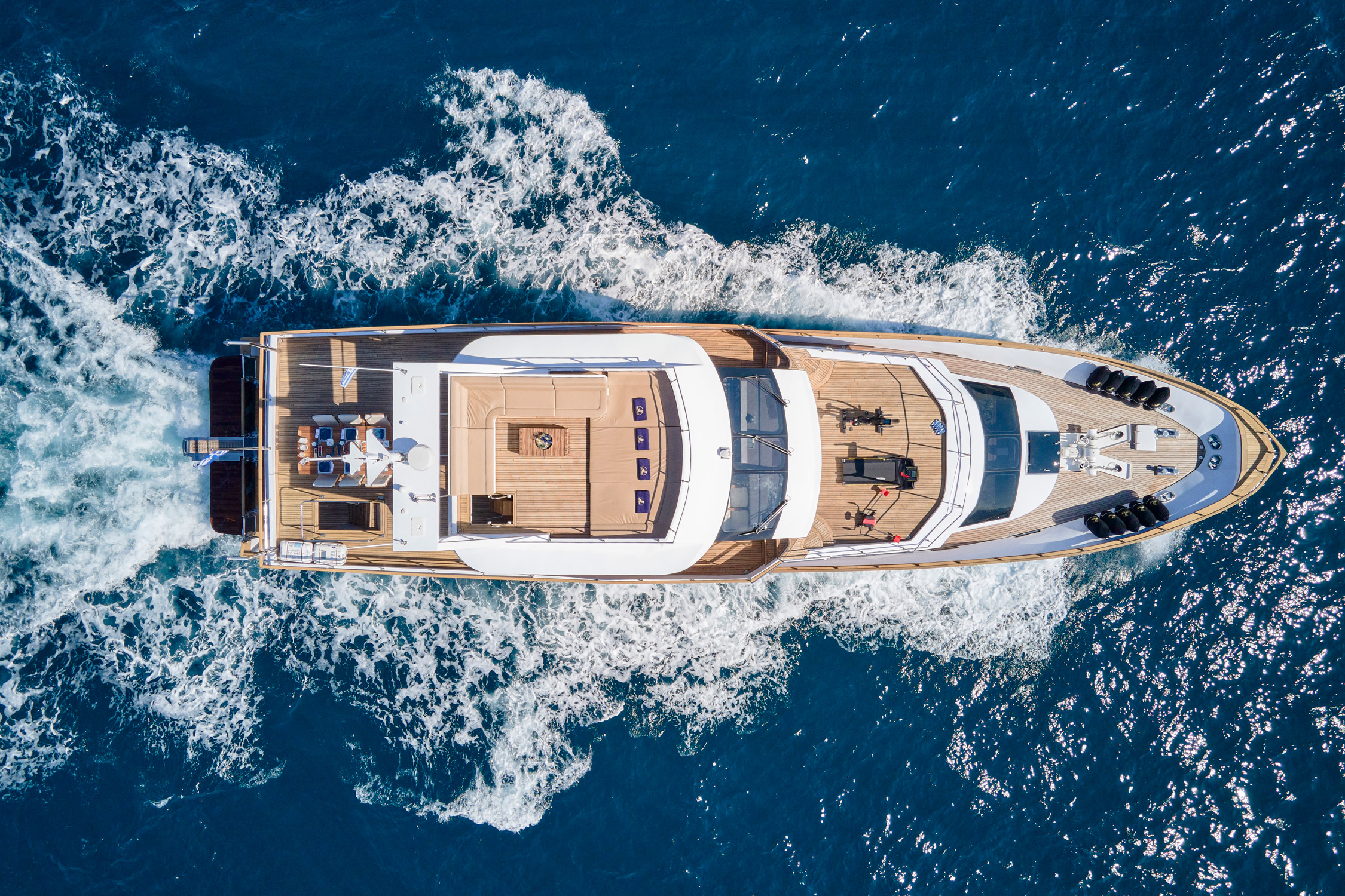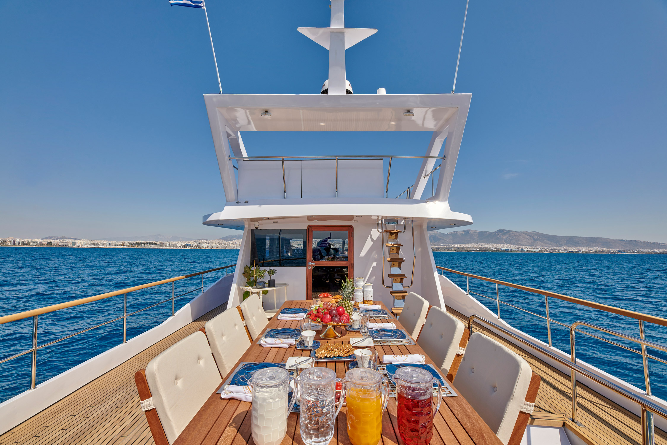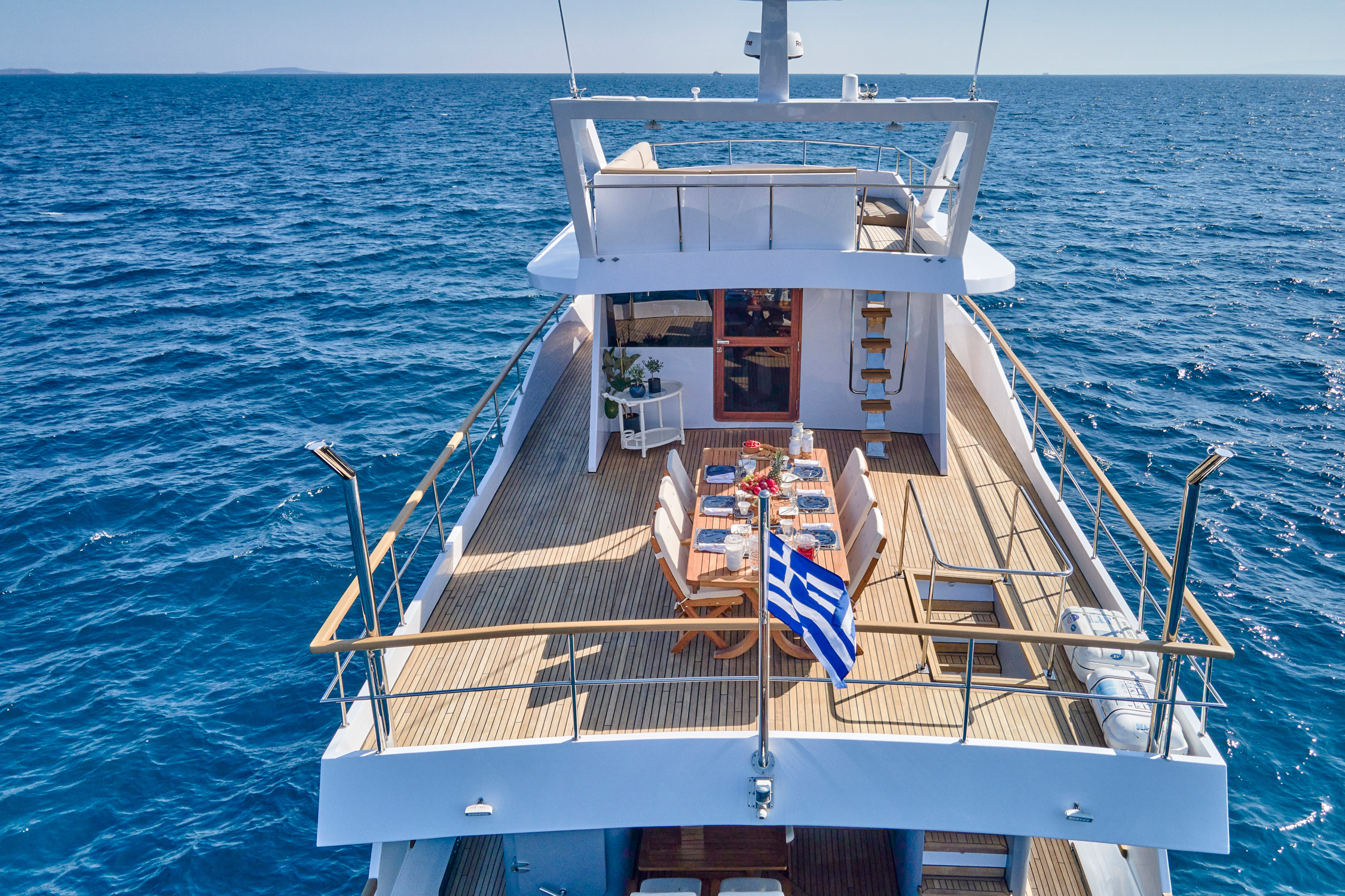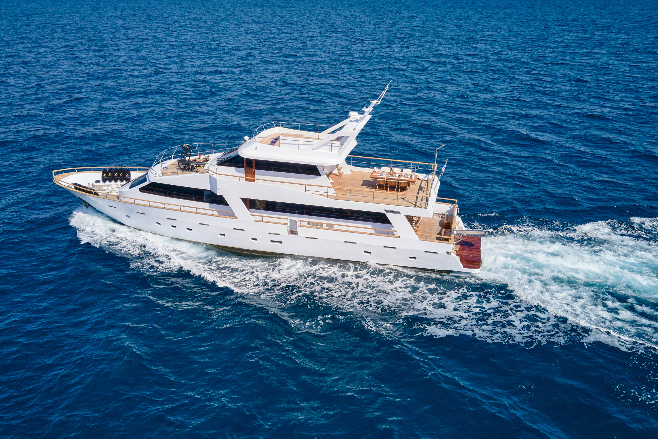 Wide Liberty’ was fully rebuilt in 2024. She features 5 cabins (1 Master, 2 Double, 2 Twin that convert into Double) all with en-suite facilities and a/c.She has ample exterior areas, Deck jaccuzzi, gym equipment and can accommodate up to 25 guests for daily cruising! Her table on the upper deck can be extended and accommodate up to 16 guests. Among her water toys collection one may find a SeaDoo, SUP, waterskis, water scooters and snorkeling equipment. WIDE LIBERTY won two awards during MEDYS 2023; 3rd in Chef Competition in Category A’ and theTablescaping